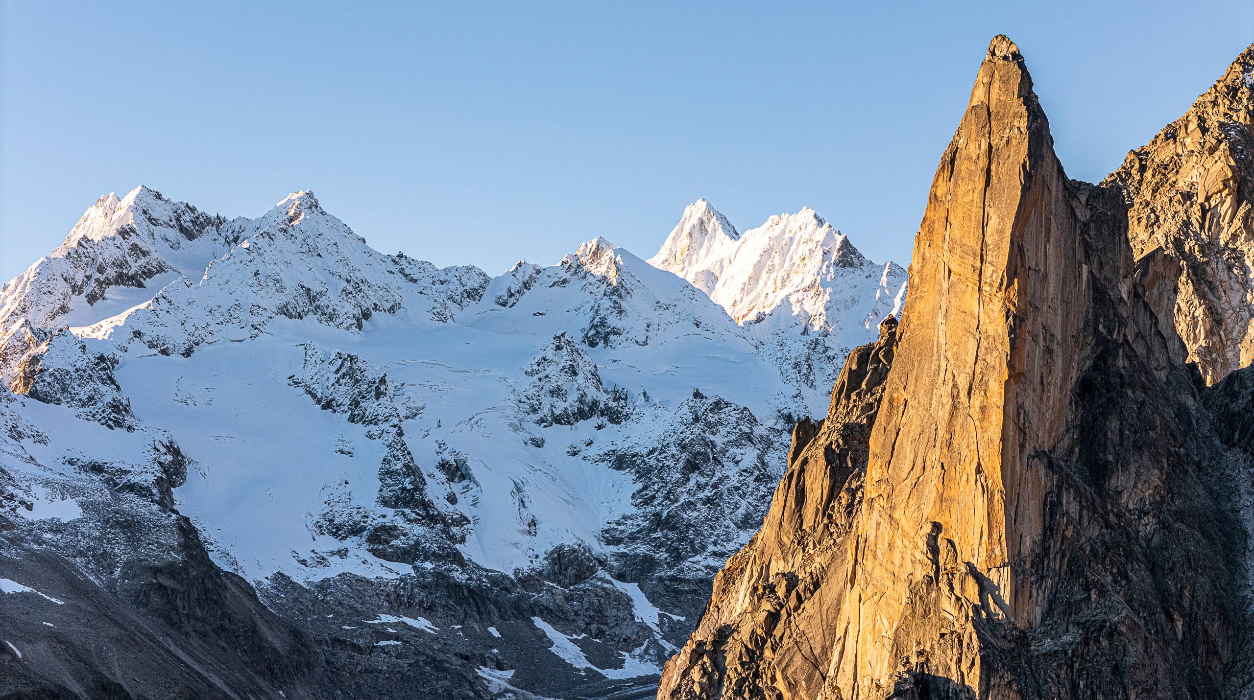 In the past few years, an ascent of this wonderful granite needle has become huge. Suddenly, after the FFA of “Historie San Fin” (8b+) and “La Promesse De L’aube” (8c) photos of perfect cracks, micro edges, and sharp aretes were flying around the world. The Mont Blanc granite is of the highest quality. Most of the routes demand full engagement and require exacting gear placing skills. The Cabane d’ Orny is cozy and great for longer stays. If the routes on the Petit Clocher du Portalet seem too short, you can try to combine the “Crettenand/Roduit” on the Pinnacle du Portalet and the “Nouvelle ere”. Before you decide to take on this monster sized climb, it might be a good idea to reassess your own fitness levels….as you won’t find any aid stations or refreshments along the way!
