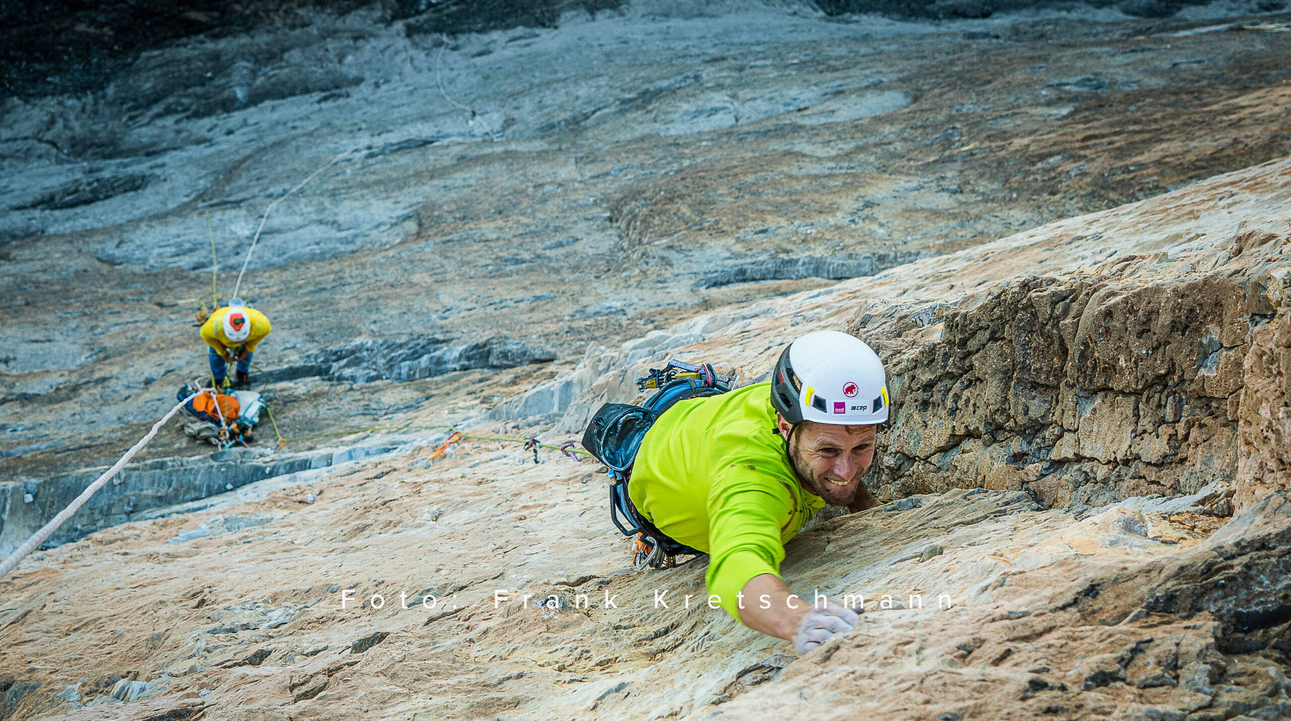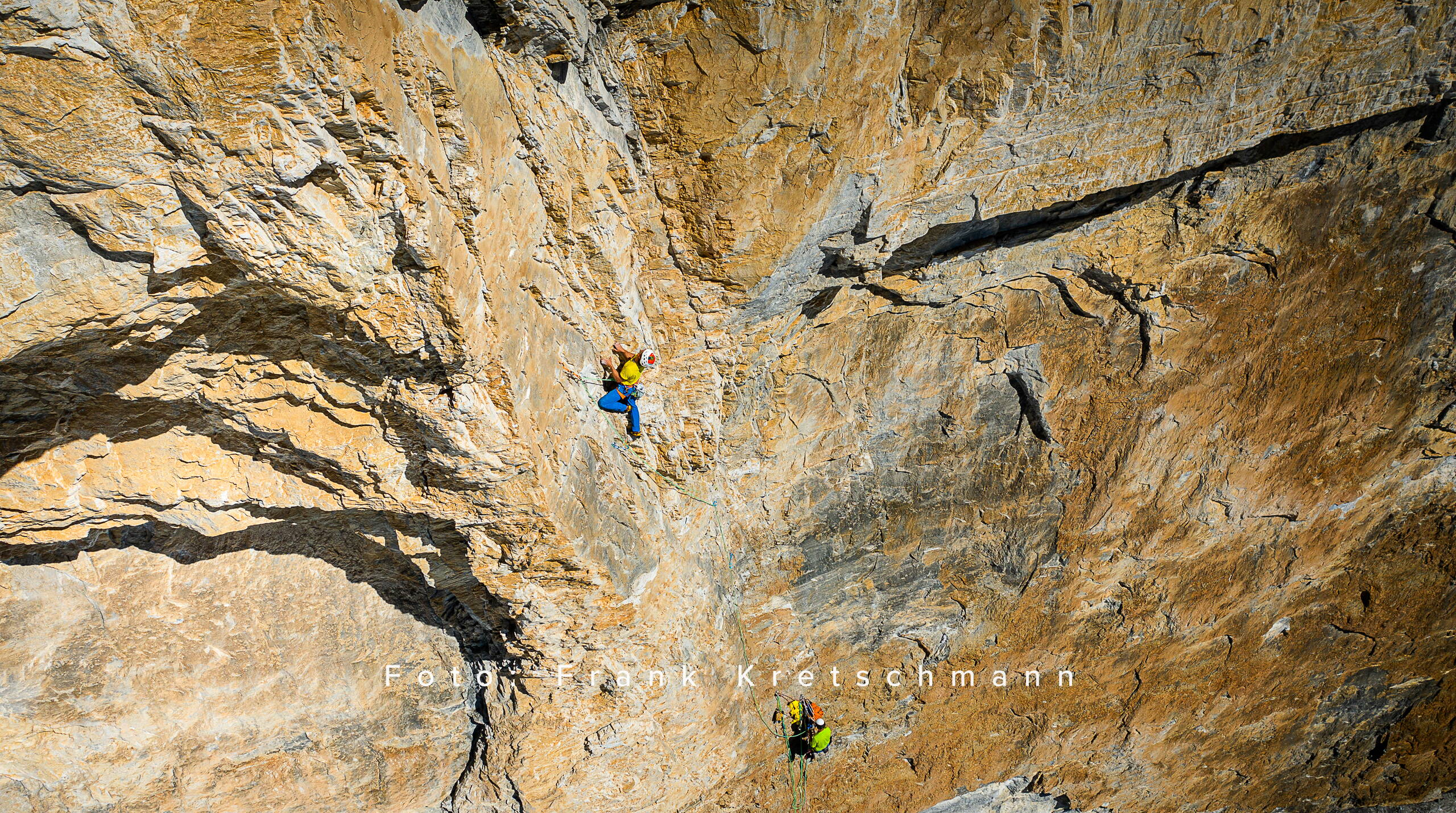 The early wild years brought the two hardened alpinists Stephan Siegrist and Roger Schali to Interlaken where they shared an apartment together for many years. In 2017 they decided to relive their early years and share a room together. This time it was in the Silberhorn Hut. The goal was to climb a new route on the Rotbratt. Only the steepest area of the wall was dry, and so the new line was obvious. They then created a most impressive and technically challenging alpine rock climb of the highest order. First ascended by two hard cores with broad shoulders and nerves of steel!