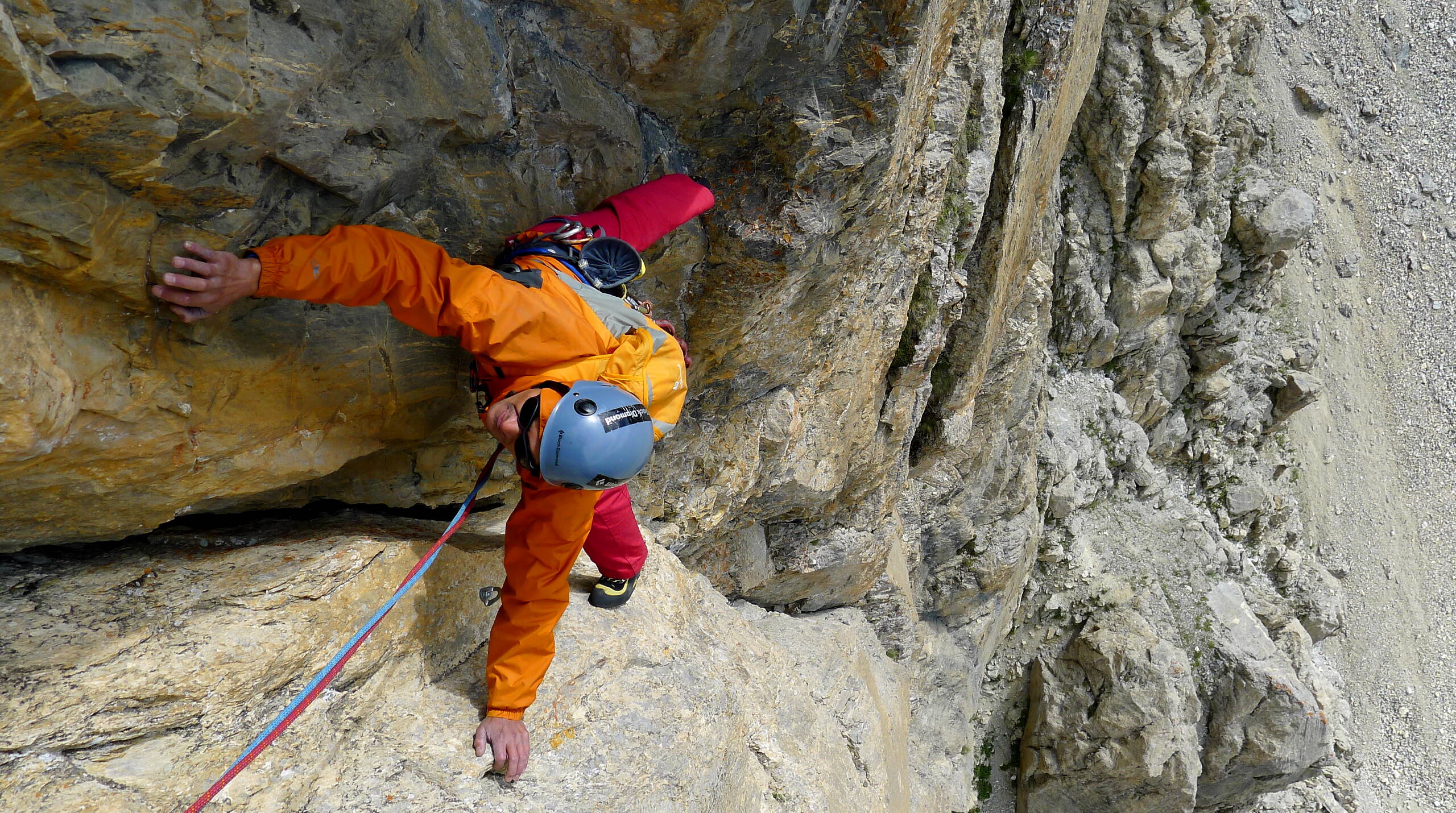 Der lange und steile Zustieg treibt den Puls ordentlich in die Höhe. Unter kreisenden Geiern steigst du in die Wand ein und kletterst Seillänge um Seillänge in die Höhe. Der griffige Bombenkalk und die Aussicht auf die Schneeriesen des Écrins-Massivs sind ein Genuss und lassen die Strapazen des Zustiegs schnell vergessen. Vorsicht ist auf den brüchigen Bändern geboten: keine Steine lösen (nachfolgende Seilschaften in der Falllinie)!