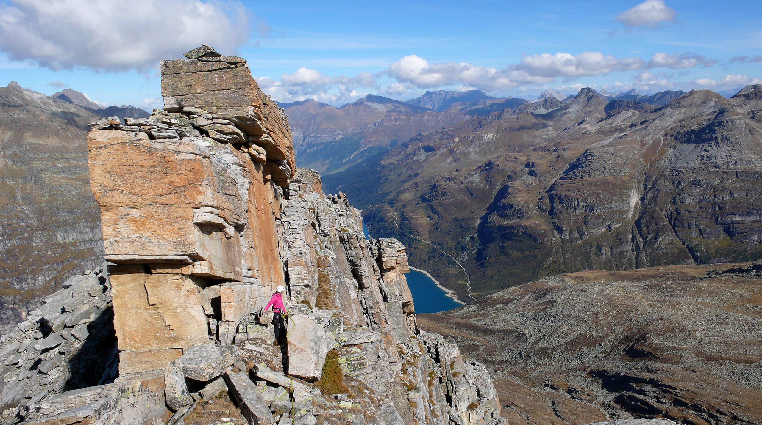 Das markante Zervreilahorn zuhinterst im Valsertal bietet einen schönen Anblick. Der Nordostgrat fordert alpines und athletisches Klettern. Auch nach der Sanierung bleibt diese Tour anspruchsvoll, und ein Rückzug ist schwierig. Unheimlich schön sind die Routen in der steilen Südwand.