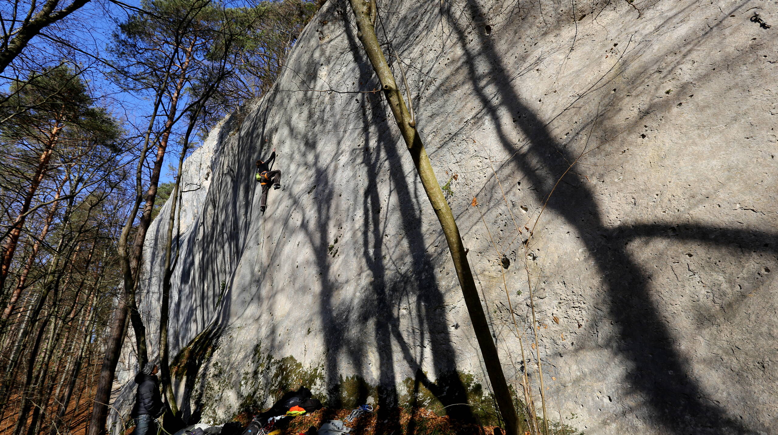 An imposing cliff band in the forest. In the middle upper part of the wall, the rock is extremely solid and compact. “Action Man” flows up and through the shield. Without a doubt this is the best line on the wall. Downside though, this route was first climbed by utilizing drilled holds, though it is actually climbable without them! Routes on the right side are short, but on great pocketed rock and require a good amount of Franken(jura) power! In recent years “Chestel” seems to have been forgotten and largely abandoned. Routes have collected dirt and the approaches are mossy. Don’t let this turn you off to the idea of a visit. With a little bit of cleaning, the routes might turn out to be little diamonds in the rough.