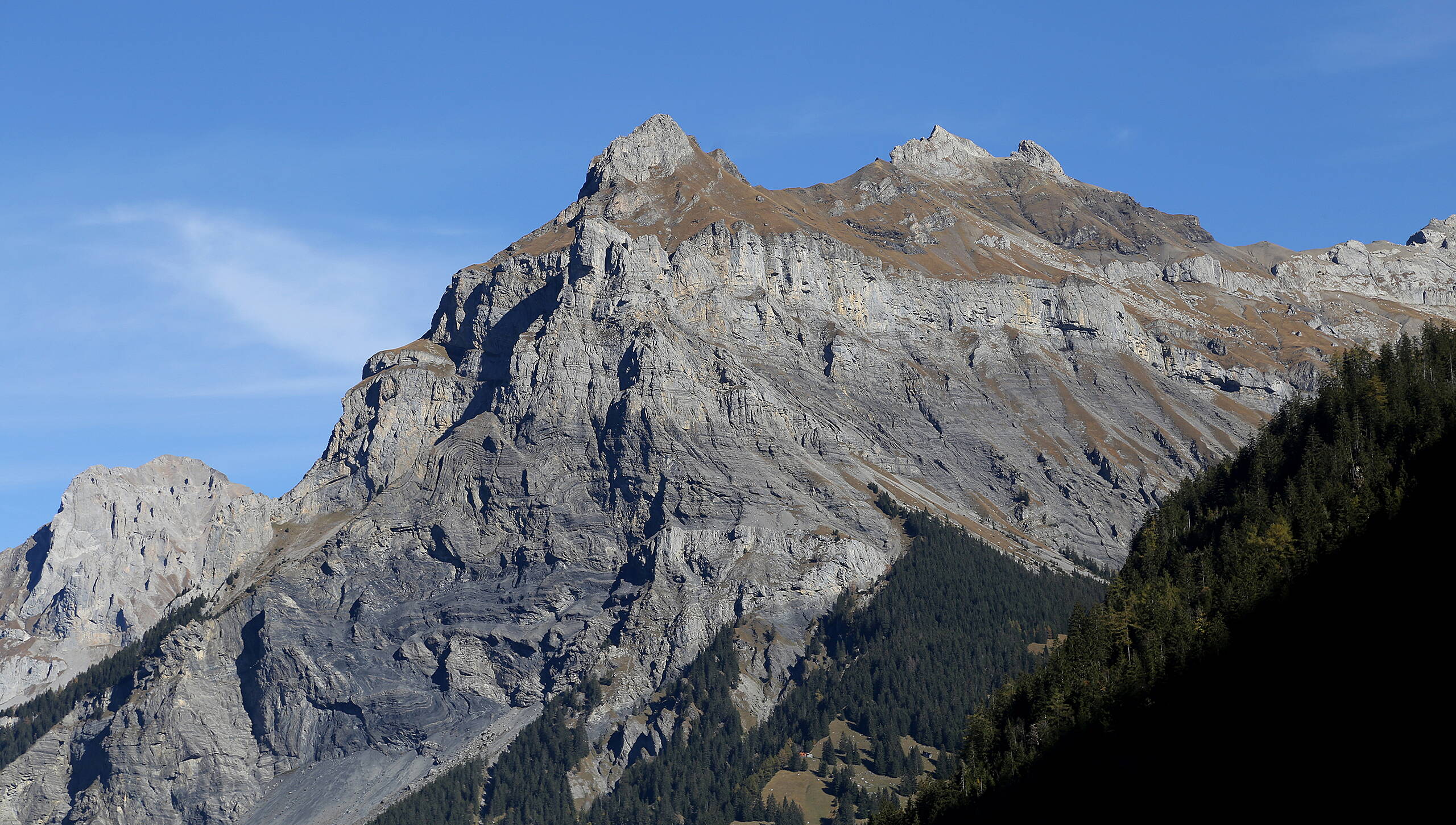 The SE Flank has become a classic. It belongs on every aspiring alpine plaisir rock climber’s checklist. The rock quality is better described as “alpine rock”. Expect some 3rd class sections. The fantastic ambience of Oeschinen Lake and Blumlisalp chain only adds to the attraction and popularity. Even on the approach, ”Biranha” demands your attention and sturdy boots. Afterwards, climb steep variable rock through some chossy ledges. “Everyday is a Saturday” has some particularly loose and chossy rock in the lower part of the wall and will not be further described. On the other hand, the upper part rallies and delivers excellent rock quality. Fixed protection is scant, therefore, supplementary trad gear is needed. The descent for all of the routes is by foot. In an emergency, “Tschari” can be descended by rappel (2 x 50 m rope necessary). Beware: The walk off is very exposed in sections, especially when wet! Watch your step! Rugged footwear is obligatory!